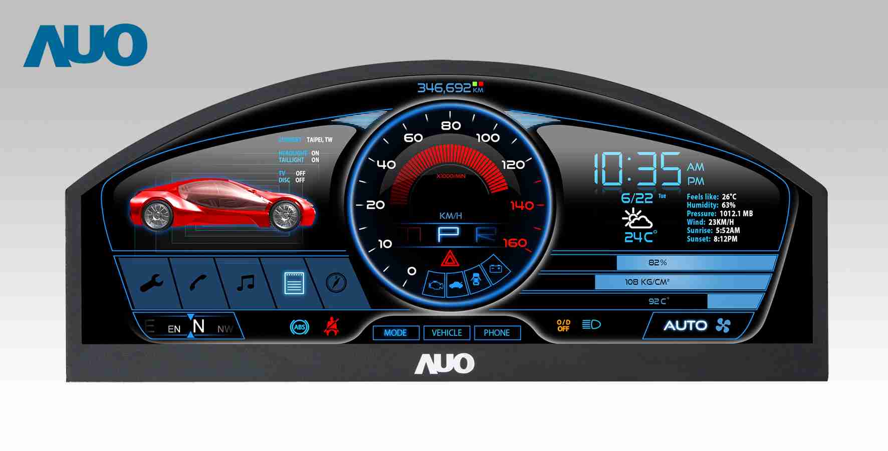 人生就是博 12.3吋超高解析异型切割车用面板,,,拥有流线外观及精细画质